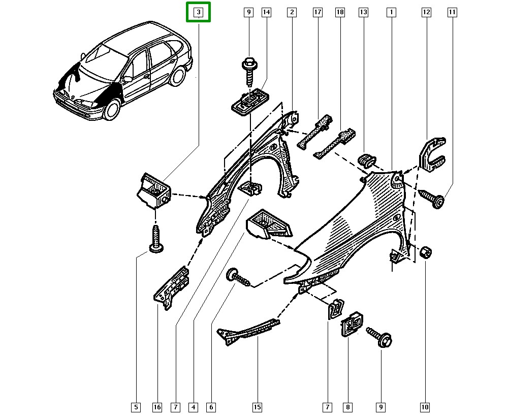 Suporte Paralama Dianteiro Direito Renault Scenic I – 7700412156